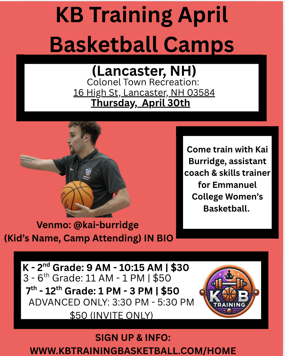 APRIL BREAK BASKETBALL CAMPS SIGN UP | MORE INFO (LEEDS) CAMP SIGN UP | MORE INFO (DANVILLE) CAMP SIGN UP | MORE INFO (LANCASTER) CAMP SIGN UP | MORE INFO (LEBANON) CAMP SIGN UP | MORE INFO (MIDDLEBURY) CAMP SIGN UP | MORE INFO (LAKE REGION, BROWNINGTON) CAMP